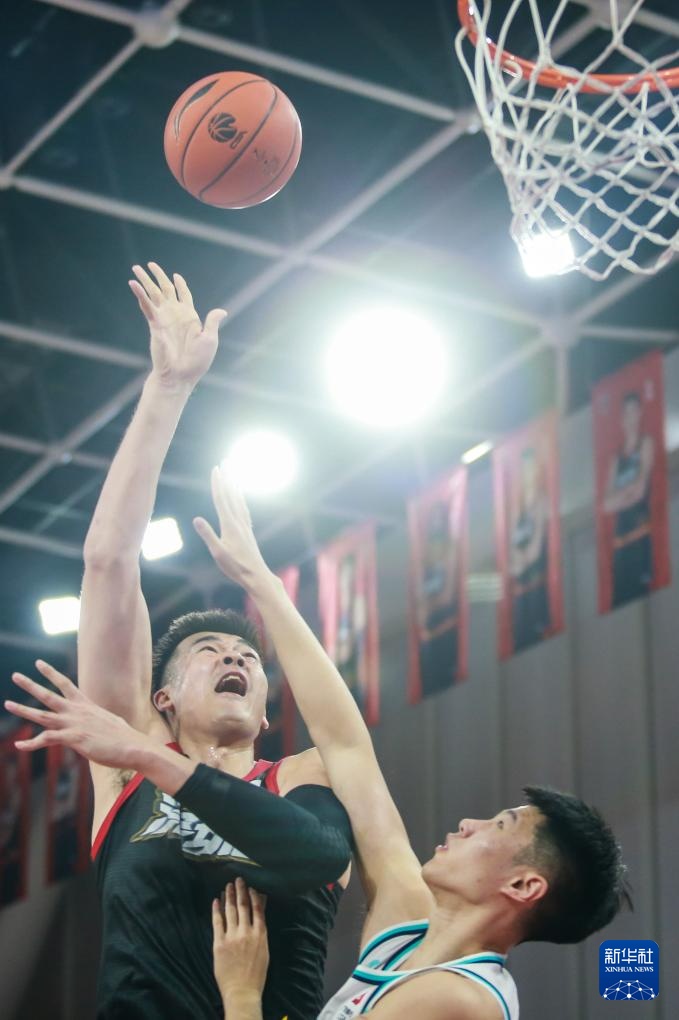 12月9日,皇冠官方深圳马可波罗队球员梅肯(右)在比赛中上篮。新华社发(彭志刚摄)
